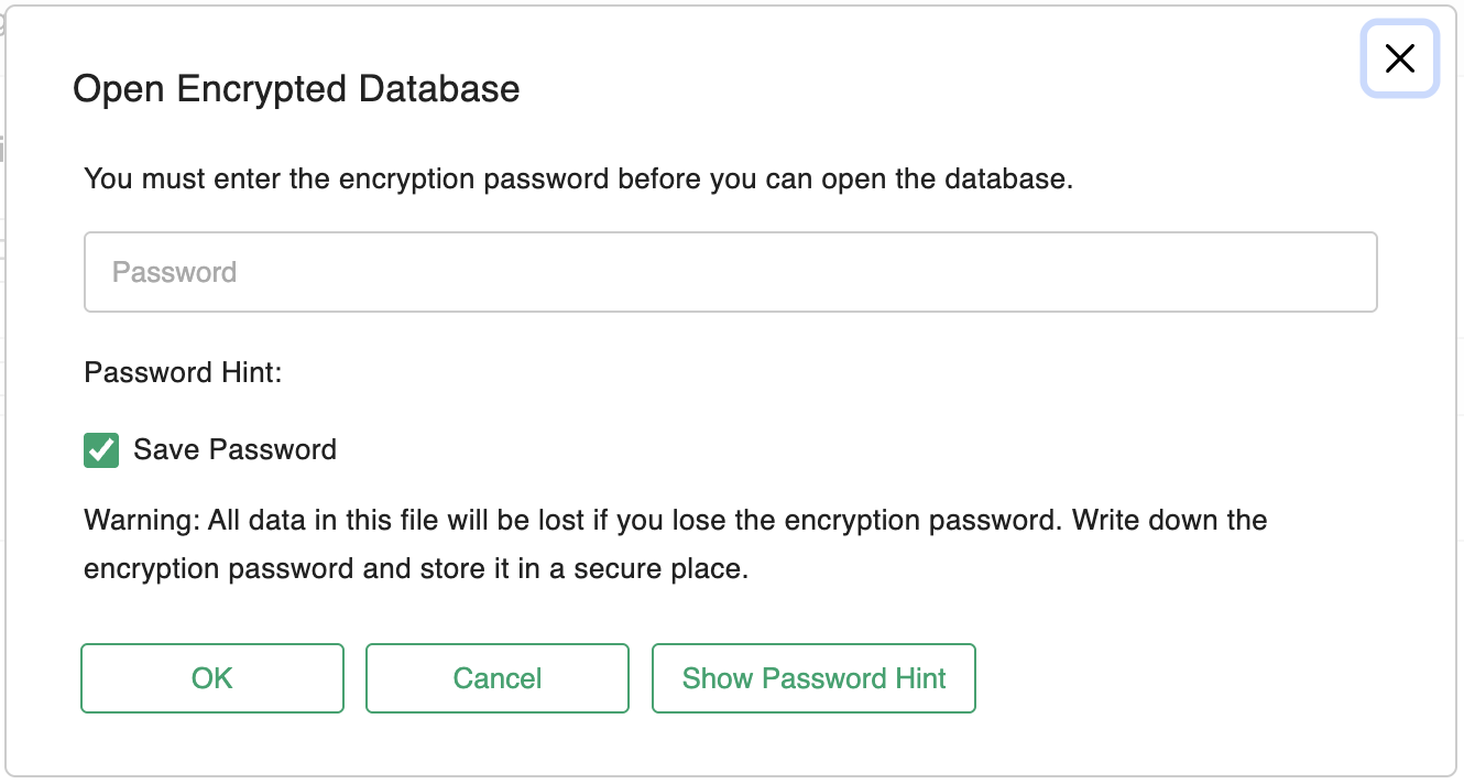 ⚠️ Important: If you ever lose your encryption password, all data in that database will be permanently inaccessible. Make sure you keep your encryption password stored securely somewhere outside the server.